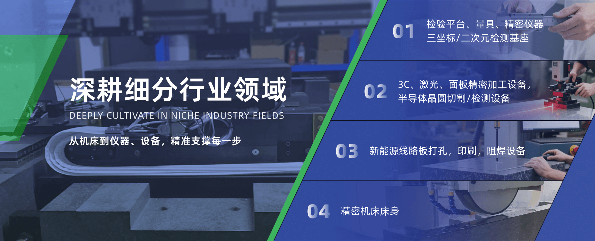 產(chǎn)品廣泛應用于3C、激光、半導體、醫(yī)療、新能源、檢測設備、直驅運動平臺、機床、非標自動化設備等領域。自成立以來,公司以“客戶價值為核心,卓越品質為基石,奮力鑄就中國第一”的企業(yè)高度,依托先進設備、一流技術與高素質團隊,在石材加工與開發(fā)應用領域持續(xù)創(chuàng)新,以穩(wěn)定的產(chǎn)品質量贏得客戶廣泛信任與贊譽。